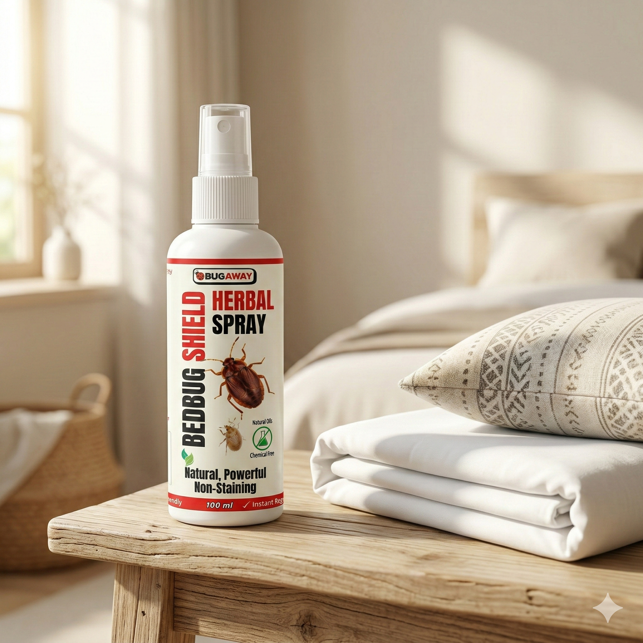 Experience fast, effective, and natural protection from bedbugs with the BugAway Bedbug Shield Herbal Spray. Specially formulated with powerful plant-based ingredients, this herbal spray offers a safe, non-toxic, and non-staining solution to keep your home free from bedbug infestations.